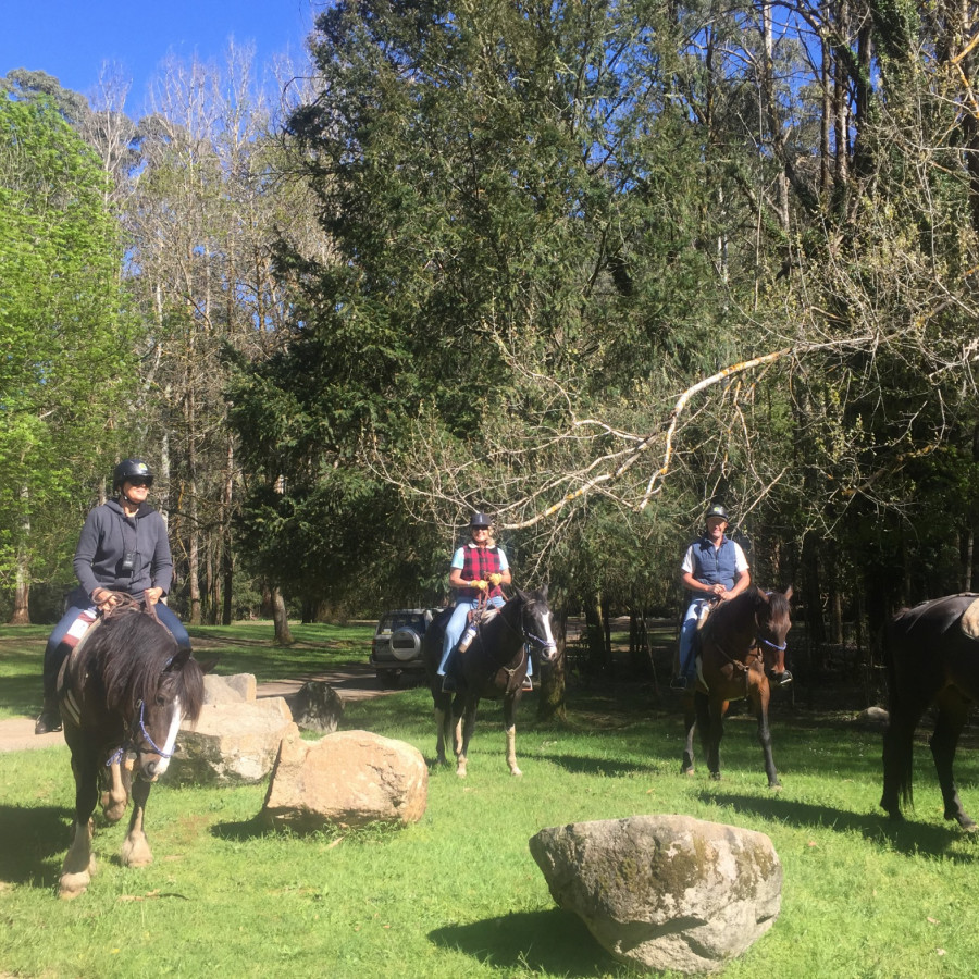 Begins with a hearty breakfast, as we get re acquainted with our steeds we ride out through the forest along the ridges up to the lookout over pinnacle/Delatite valley then make our way down to the Delatite river, making our way to the beautiful Mirrimbah park to enjoy a BBQ lunch by the banks of the river , once a logging town at the base of Mt. Buller after lunch we make our way back along the river through the towering gums to Plain creek where we meander along the old tram tracks then follow the ridges back to Buttercup Valley.