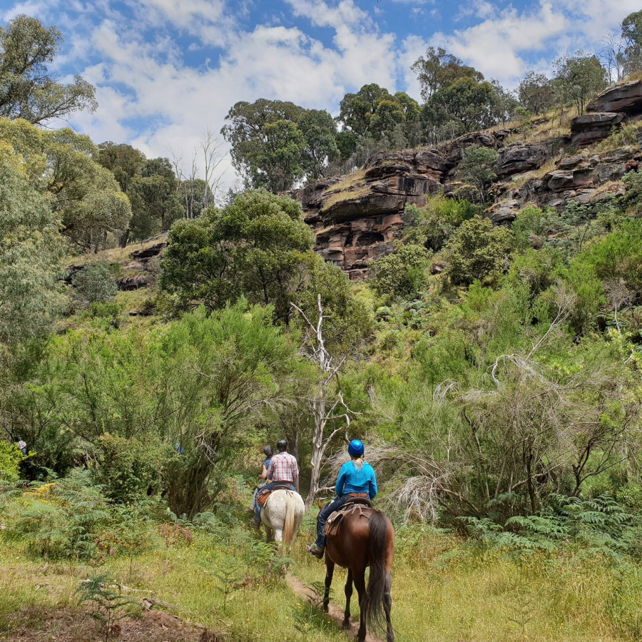 Begins with a hearty breakfast, as we get re acquainted with our steeds we ride out through the forest along the ridges up to the lookout over pinnacle/Delatite valley then make our way down to the Delatite river, making our way to the beautiful Mirrimbah park to enjoy a BBQ lunch by the banks of the river , once a logging town at the base of Mt. Buller after lunch we make our way back along the river through the towering gums to Plain creek where we meander along the old tram tracks then follow the ridges back to Buttercup Valley.